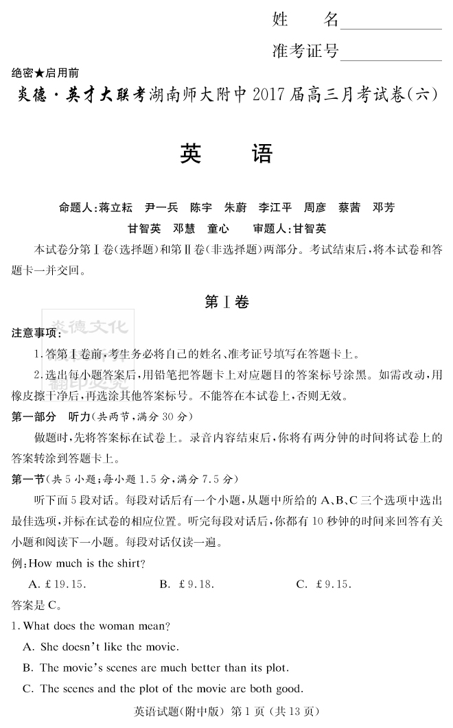 | 資源類別: | 名校月考 | |