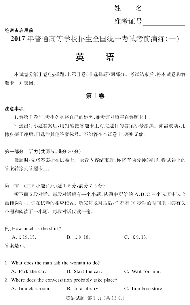 下一篇:【語文】2017年普通高等學校招生全國統一考試考前演練(一)