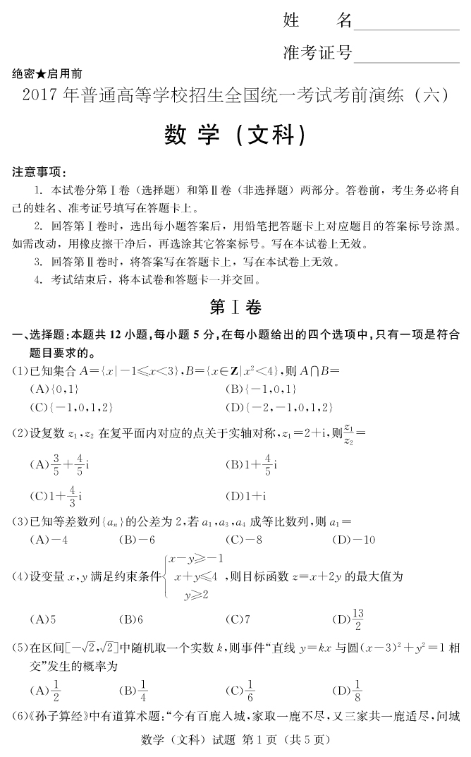 下一篇:【文綜】2017年普通高等學校招生全國統(tǒng)一考試考前演練(六)