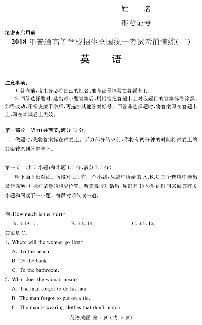下一篇:【語文】2018年普通高等學校招生全國統一考試考前演練(二)
