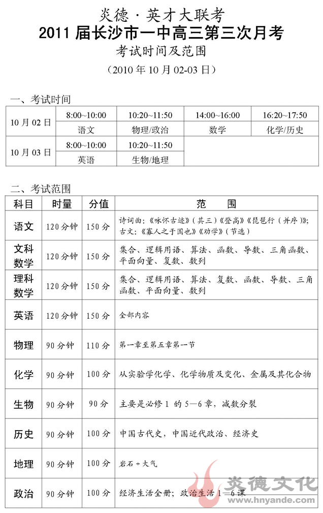 上一篇:炎德英才大聯考長沙市一中2011屆高三月考試卷考試時間和范圍