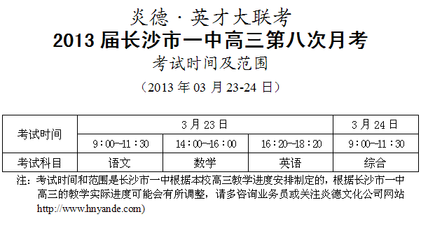 來源:炎德文化點擊:2013-03-19 11:56:27收藏本文當前位置:考試范圍 長沙一中 高三 正文
