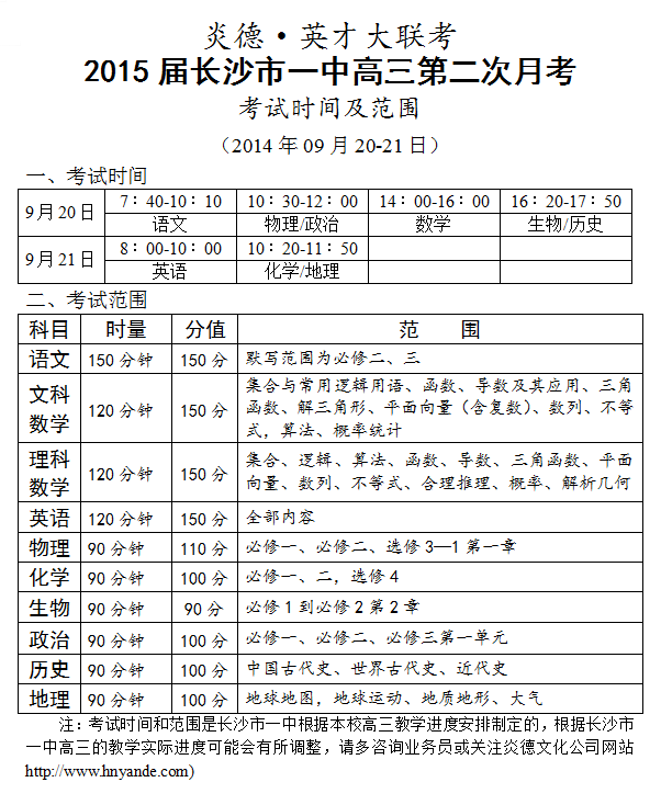 下一篇:炎德英才大聯(lián)考長沙市一中2015屆高三第3次月考考試時間和范圍(2014.10.25-26)