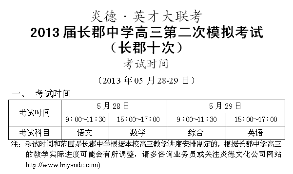 上一篇:炎德英才大聯考長郡中學2013屆高三第九次月考考試時間(2013年5月4-5日)