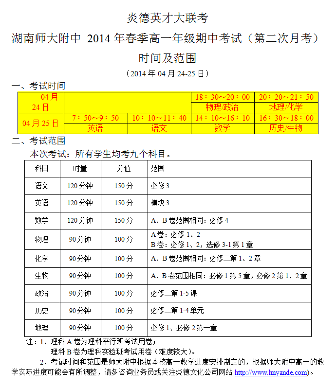 上一篇:2014年春季師大附中高一第一次月考考試時間及范圍(2014.03.22-23)