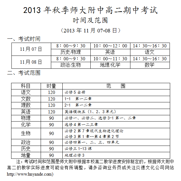 上一篇:2013年秋季師大附中高二第一次月考考試時(shí)間和范圍(2013.10.06-07)