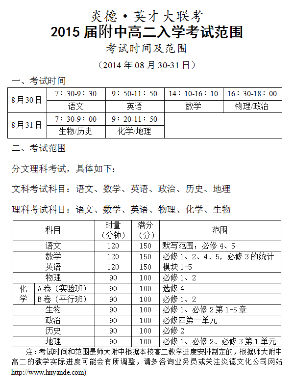 下一篇:炎德英才大聯考師大附中2014年秋季湖南師大附中高二第一次月考考試時間和范圍(2014.10.05-06)