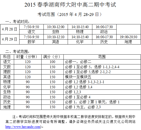 下一篇:2015春季師大附中高二學業水平考試仿真模擬試卷一考試時間安排(2015年5月15-16日)