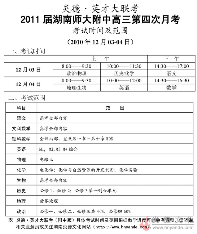 上一篇:炎德英才大聯(lián)考湖南師大附中2011屆高三第三次月考考試時間和范圍