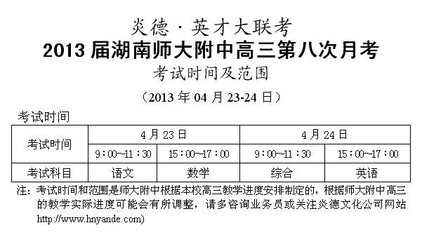 來源:炎德文化點(diǎn)擊:2013-04-22 18:39:30收藏本文當(dāng)前位置:考試范圍 師大附中 高三 正文