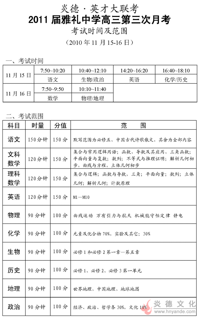 來源:本站原創點擊:2010-11-11 10:09:06收藏本文當前位置:考試范圍 雅禮中學 高三 正文