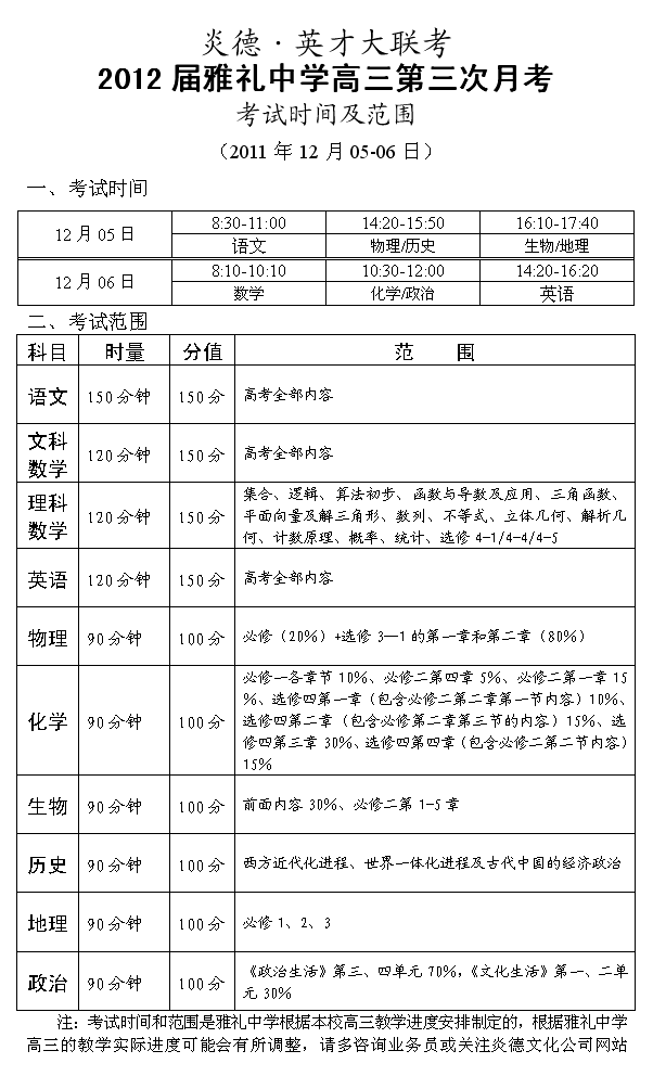 來源:炎德文化點擊:2011-11-28 16:33:00收藏本文當前位置:考試范圍 雅禮中學 高三 正文