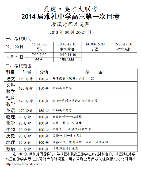 下一篇:炎德英才大聯考雅禮中學2014屆高三第2次月考考試時間和范圍(2013.10.21-22)