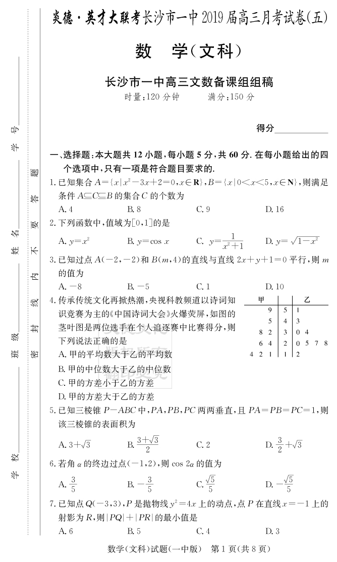上一篇:【生物】炎德英才大聯考2019長沙一中高三5次月考