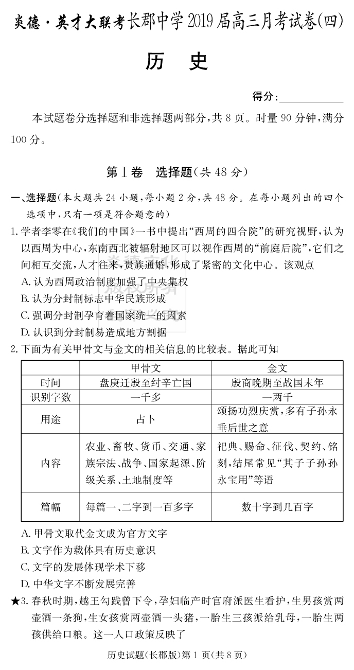 下一篇:【生物】炎德英才大聯考2019長郡中學高三4次月考
