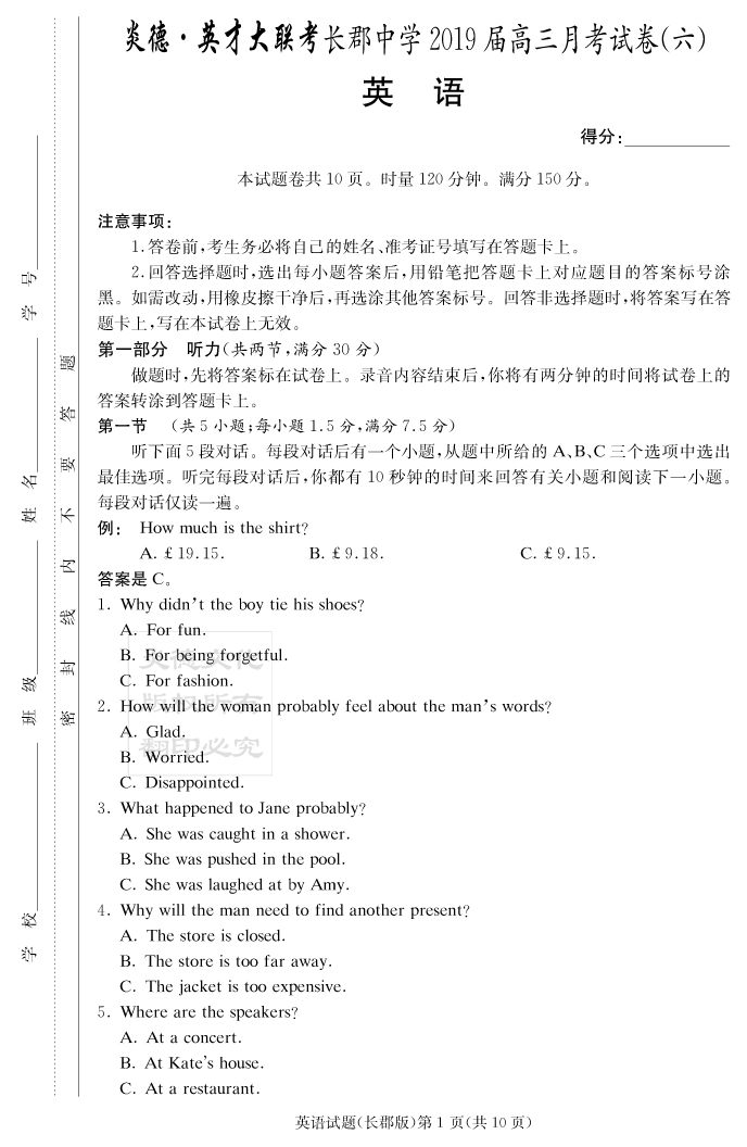 | 資源類別: | 名校月考 | |