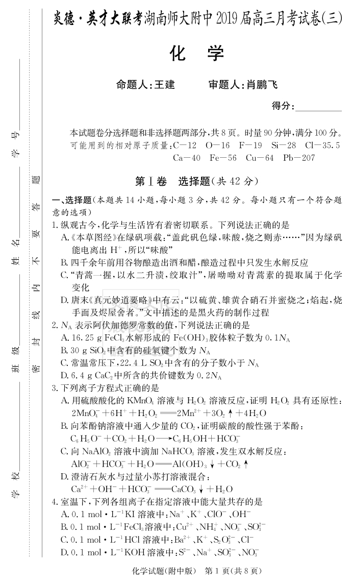 下一篇:【理數】炎德英才大聯考2019師大附中高三3次月考