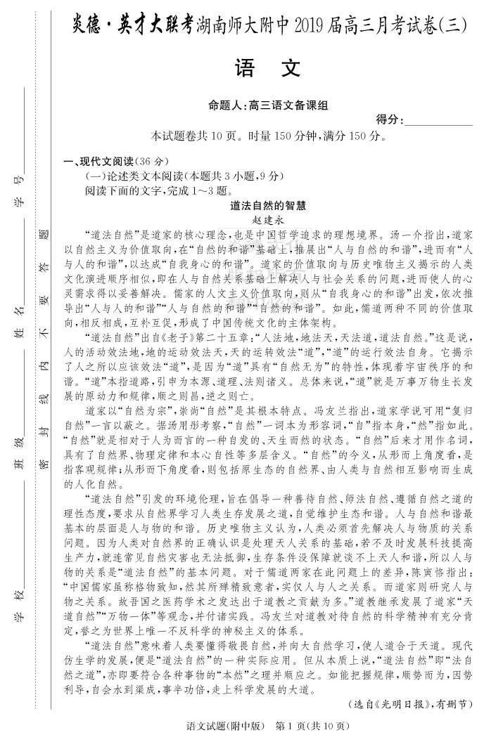 上一篇:【英語】炎德英才大聯考2019師大附中高三3次月考