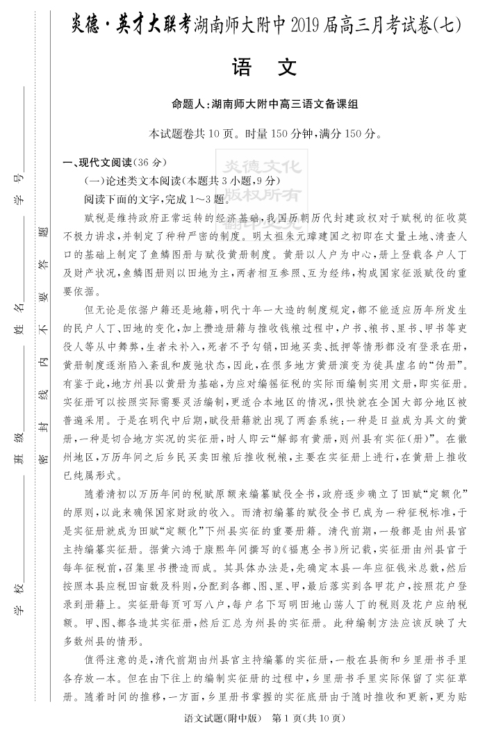 上一篇:【英語】炎德英才大聯(lián)考2019師大附中高三7次月考