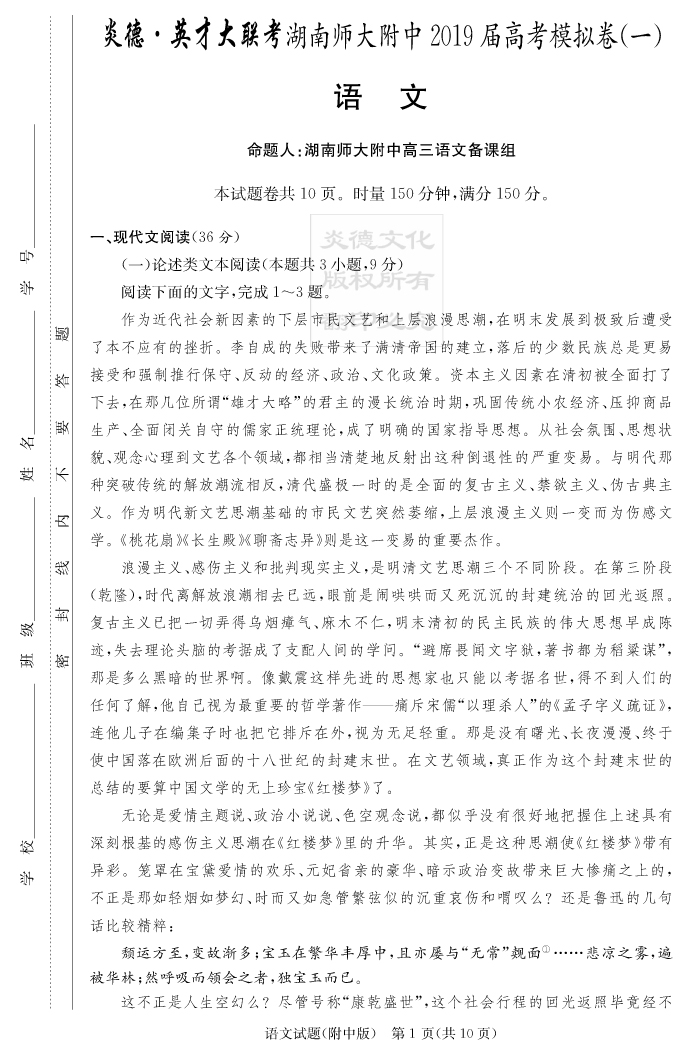 上一篇:【英語】炎德英才大聯考2019師大附中高三8次月考(模擬一)