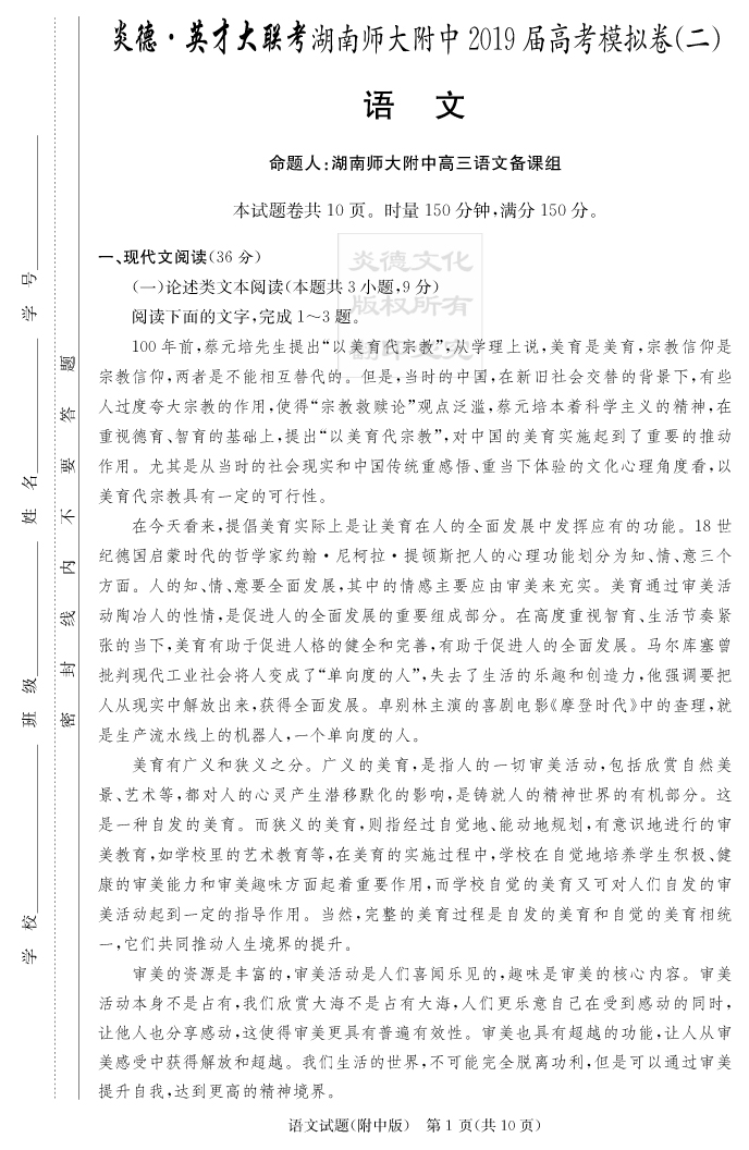 上一篇:【英語】炎德英才大聯考2019師大附中高三9次月考(模擬二)