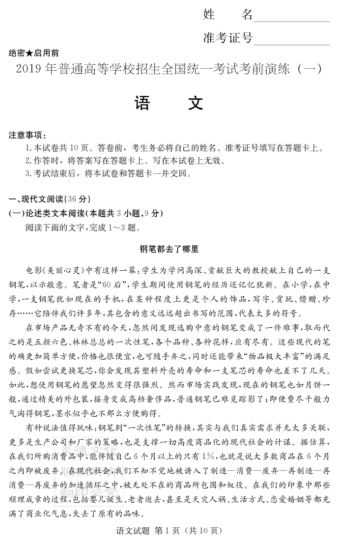 上一篇:【英語】2019年普通高等學校招生全國統一考試考前演練(一)