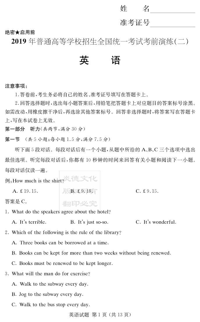 下一篇:【語文】2019年普通高等學校招生全國統一考試考前演練(二)