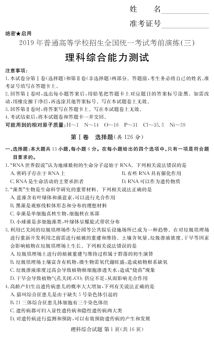 2026高考總復習單元同步滾動測試卷·生物