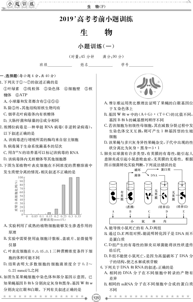 2026名師導學·高考總復習·小題量基礎周周考·生物