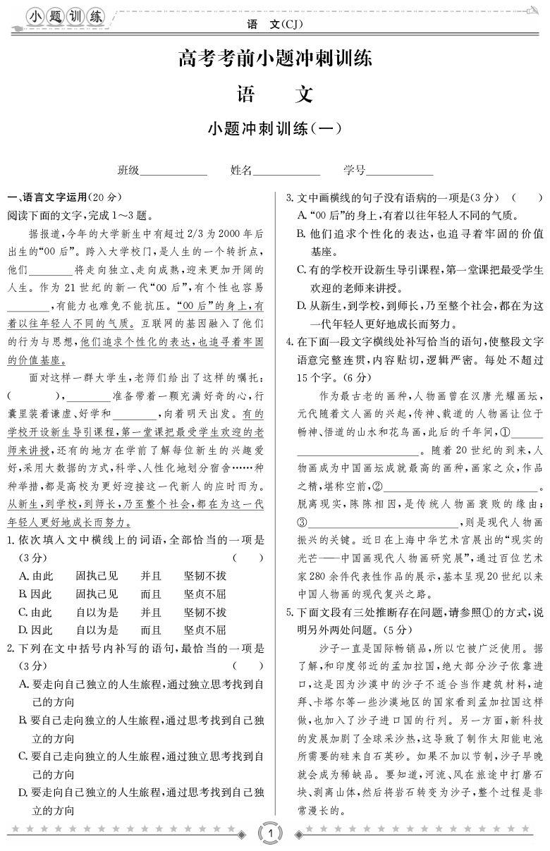 2026名師導學·高考總復習·小題量基礎周周考·語文