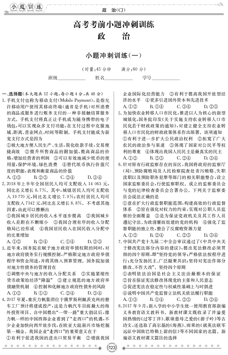 2026名師導學·高考總復習·小題量基礎周周考·政治
