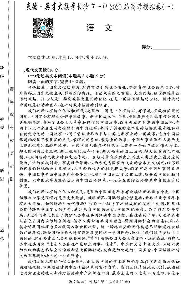 上一篇:【英語】炎德英才大聯考2020屆長沙市一中高三9次月考(模擬一)