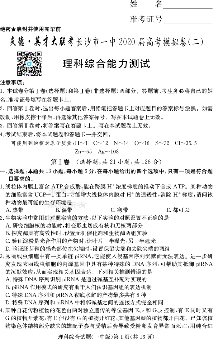 上一篇:【理數】炎德英才大聯考2020屆長沙市一中高三10次月考(模擬二)