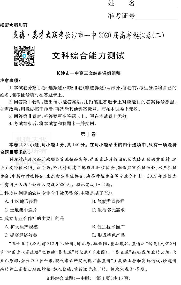 下一篇:【英語】炎德英才大聯考2020屆長沙市一中高三10次月考(模擬二)