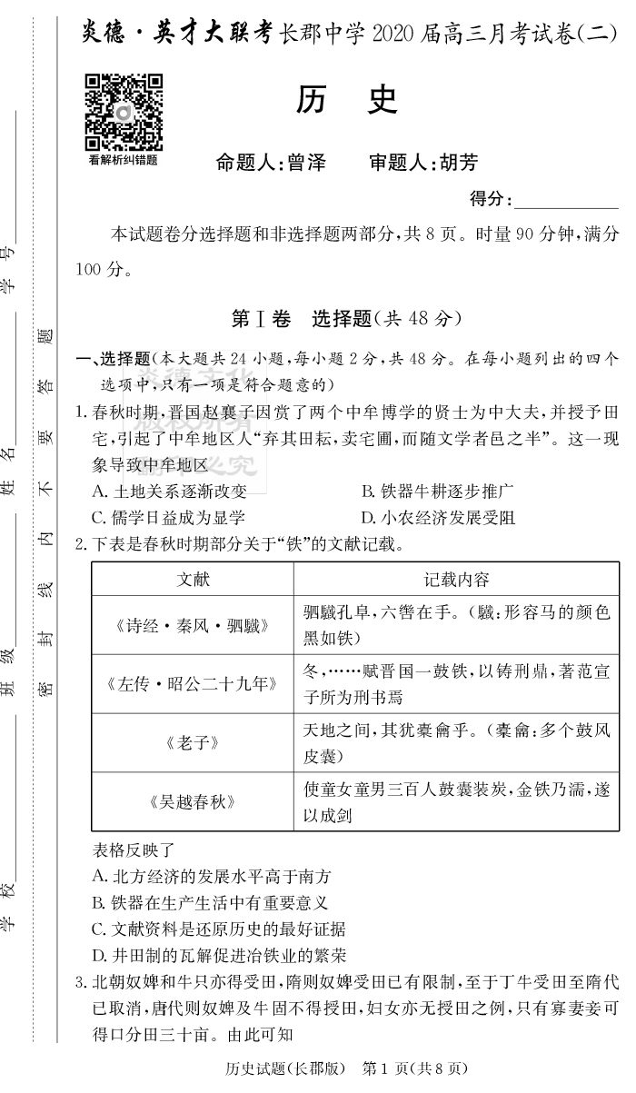 | 資源類別: | 名校月考 | |