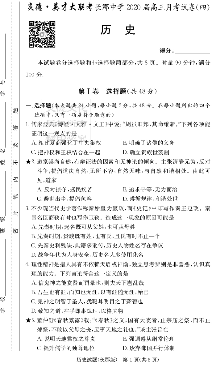 上一篇:【理數】炎德英才大聯考2020屆長郡中學高三4次月考