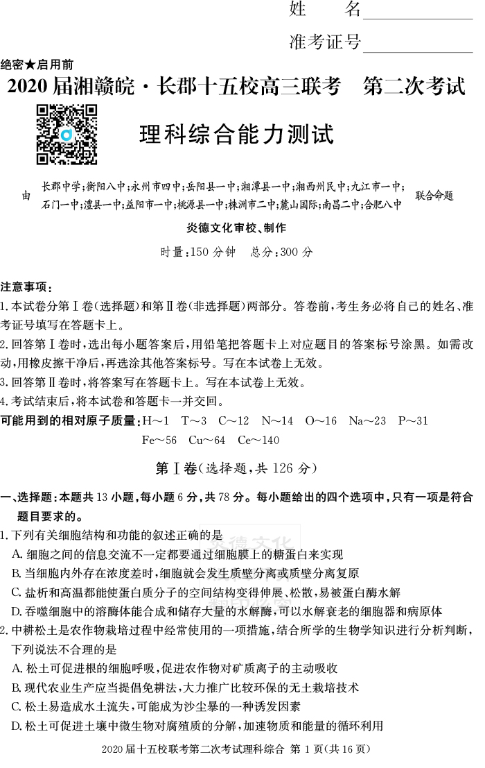 上一篇:【理數(shù)】炎德英才大聯(lián)考2020屆長(zhǎng)郡中學(xué)高三8次月考(十五校聯(lián)考一)