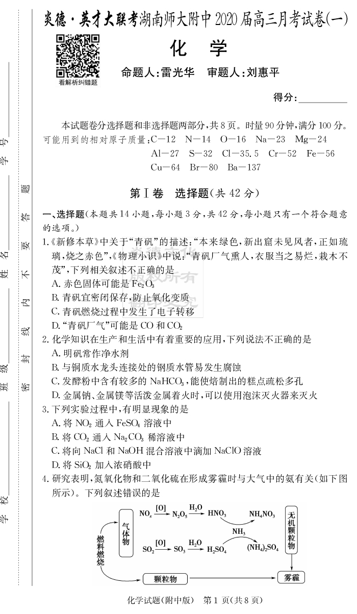 2025名師導學·名校名卷經(jīng)典試題匯編·化學