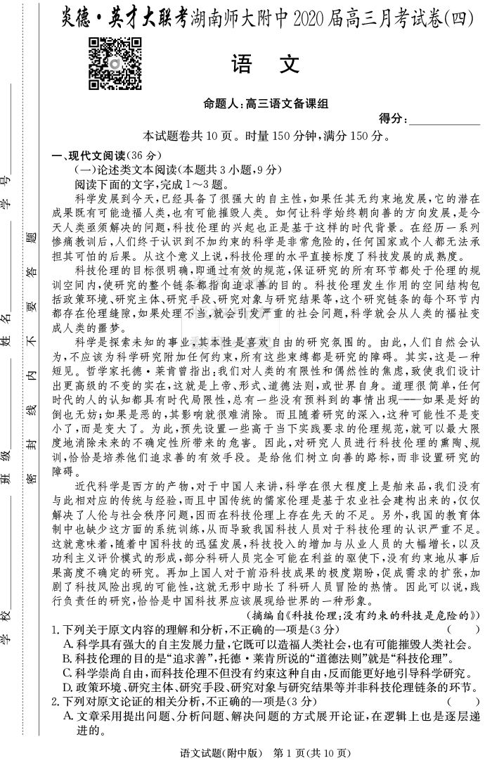 上一篇:【英語】炎德英才大聯考2020屆師大附中高三4次月考