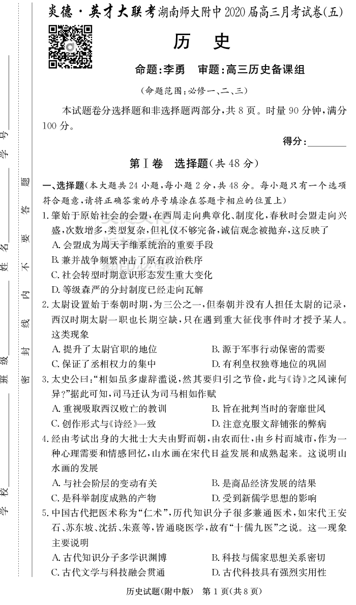 2026名師導學·高考總復習·小題量基礎周周考·歷史