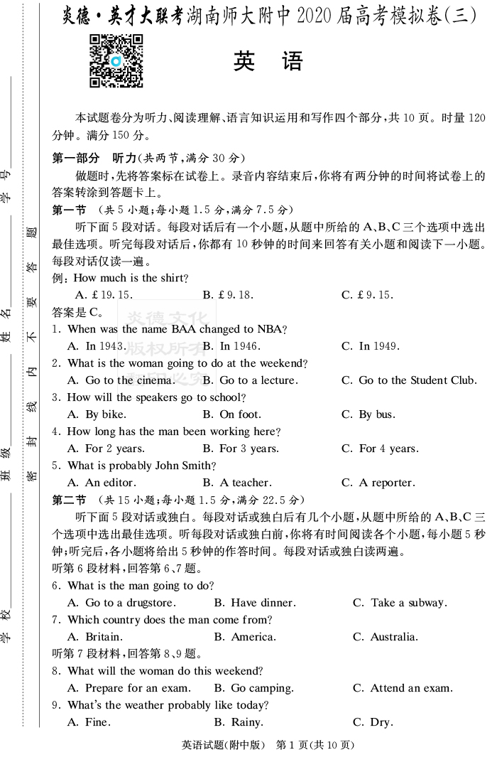 下一篇:【語文】炎德英才大聯考2020屆師大附中高三10次月考(模擬三)