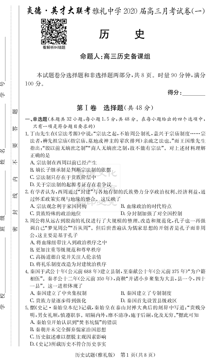 2026名師導學·高考總復習·小題量基礎周周考·歷史