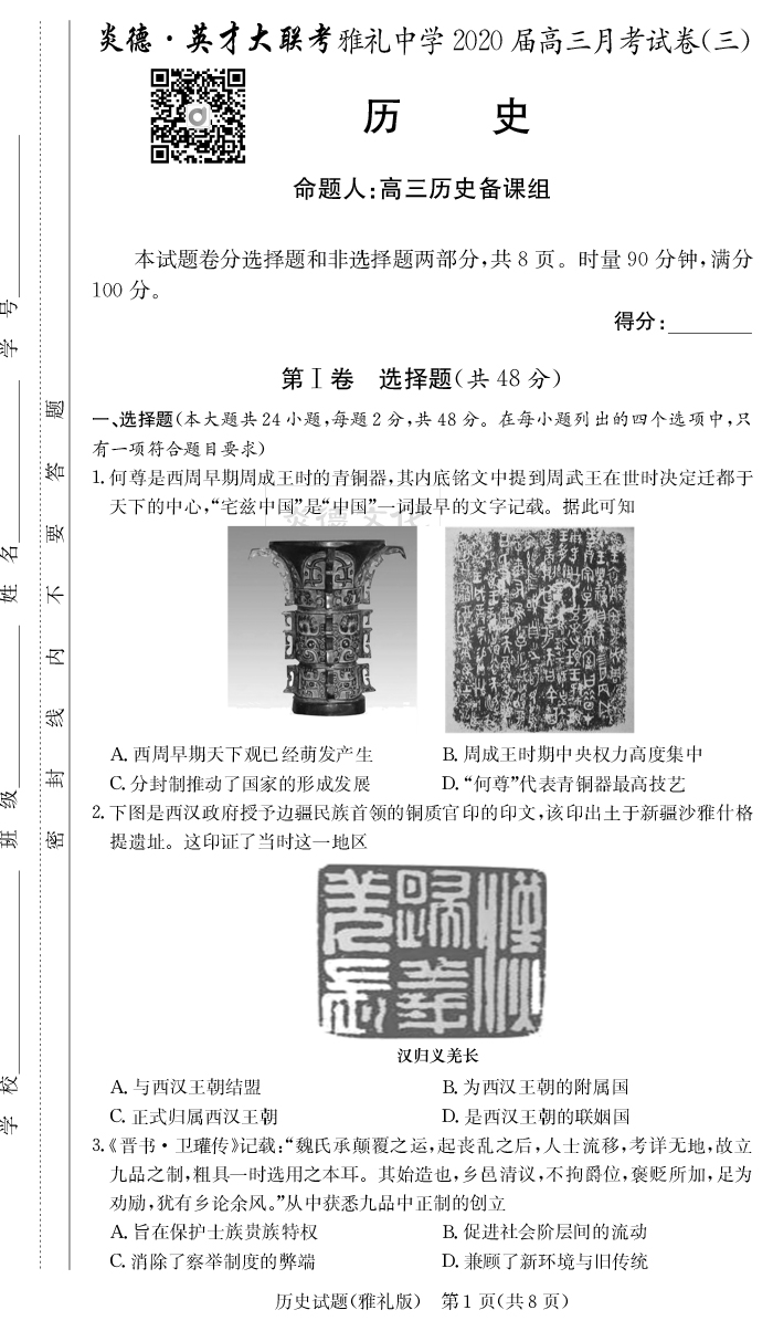 2026名師導學·高考總復習·小題量基礎周周考·歷史