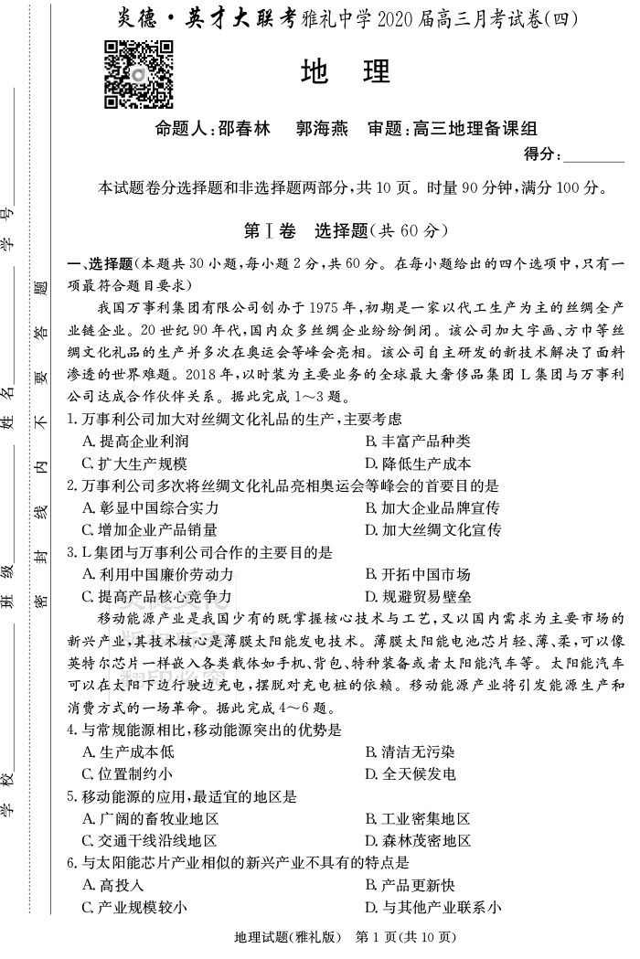 上一篇:【政治】炎德英才大聯考2020屆雅禮中學高三3次月考