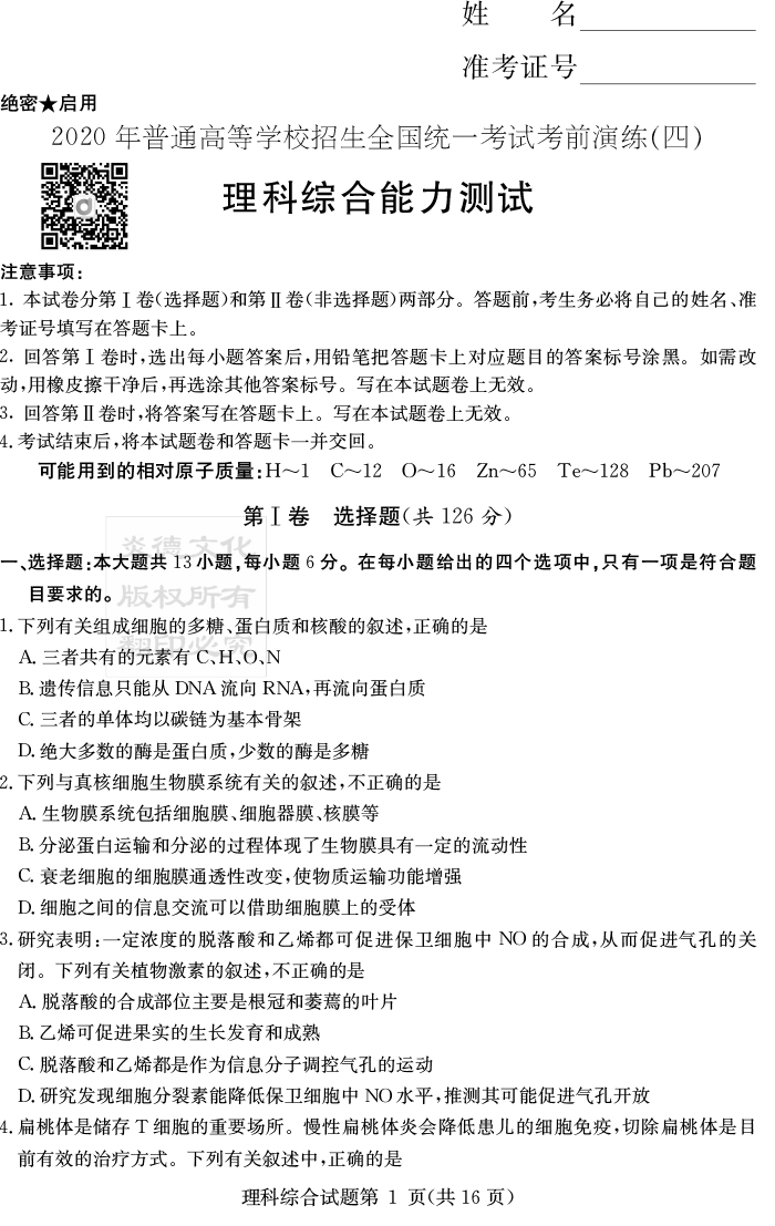上一篇:【理數】2020年普通高等學校招生全國統一考試考前演練(四)