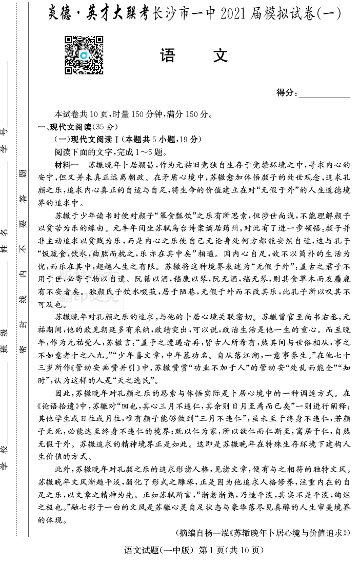 上一篇:【英語】炎德英才大聯考2021屆長沙市一中高三10次月考(模擬一)