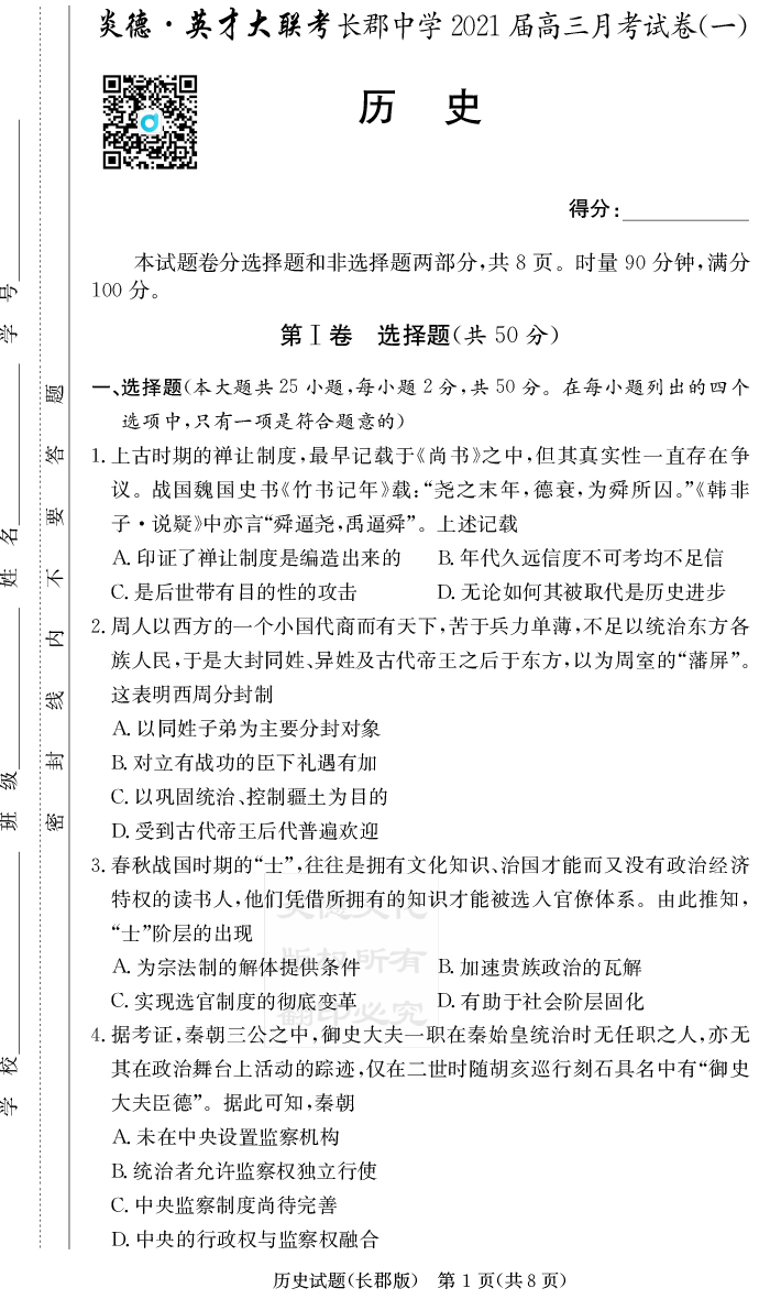 2025名師導學·名校名卷經典試題匯編·歷史