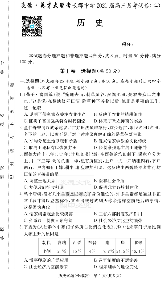 2025名師導學·名校名卷經典試題匯編·歷史