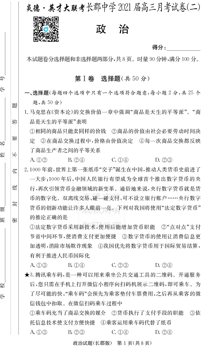 下一篇:【地理】炎德英才大聯考2021屆長郡中學高三3次月考