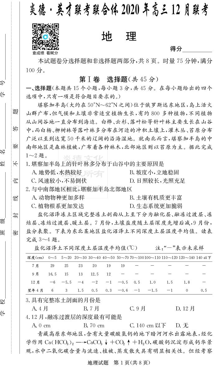 下一篇:【化學】炎德英才大聯考2021屆長郡中學高三4次月考(高三聯合體12月聯考)